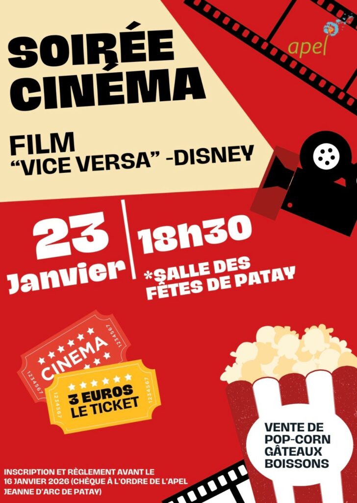 L’Equipe Educative et l’Apel organisent une soirée cinéma en lien avec le projet d’établissement de cette année autour du film « Vice Versa ».